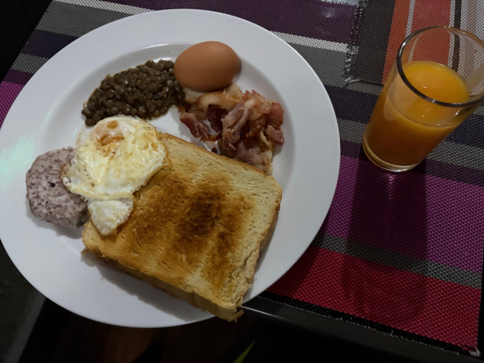 Hell’s Gate 국립공원으로 떠나기 전에 아침을 먹었다. 이 때는 몰랐는데 콩이 없는 첫 끼였던 것 같다.