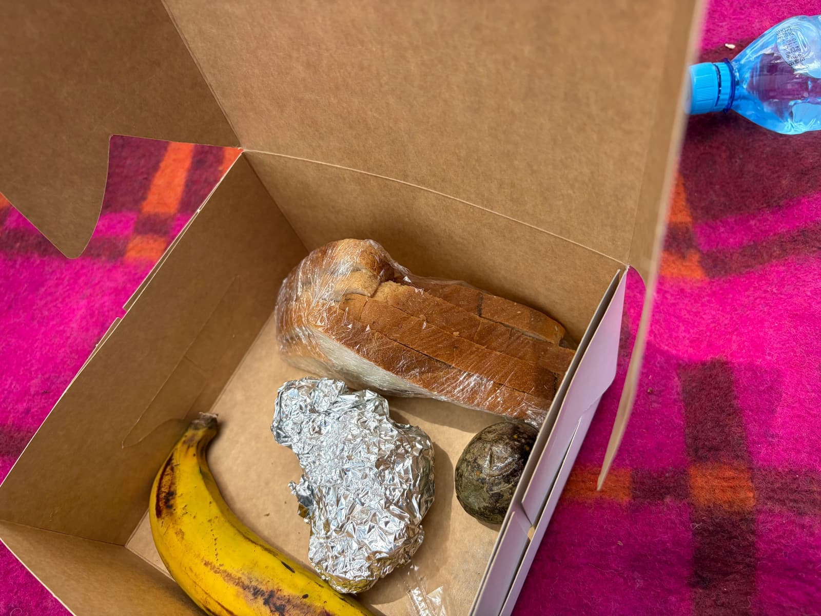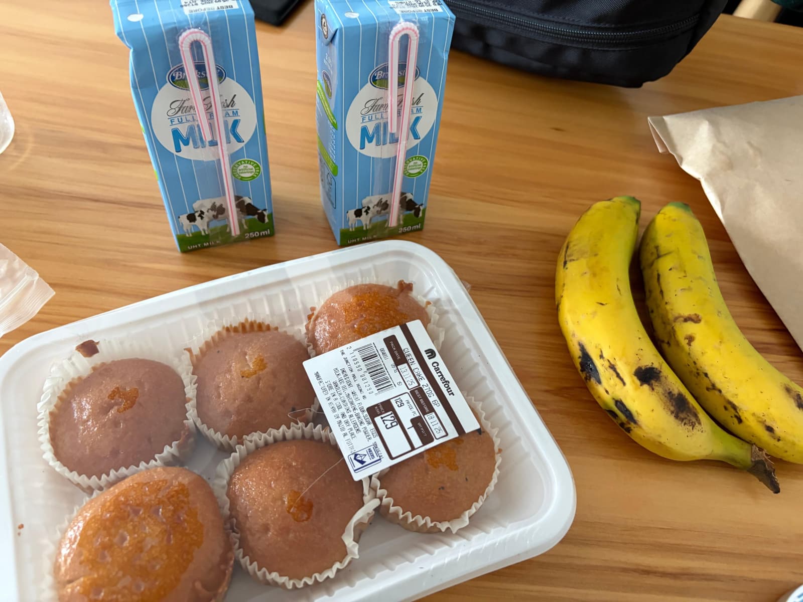 그래서 호다닥 달려나가서 열어보니 빵과 바나나, 우유가 있었다. 다 내가 좋아하는 메뉴라 기뻤는데 우유는 왠지 모르게 뭔가 이상한 냄새가 나서 제대로 먹지 못했다.