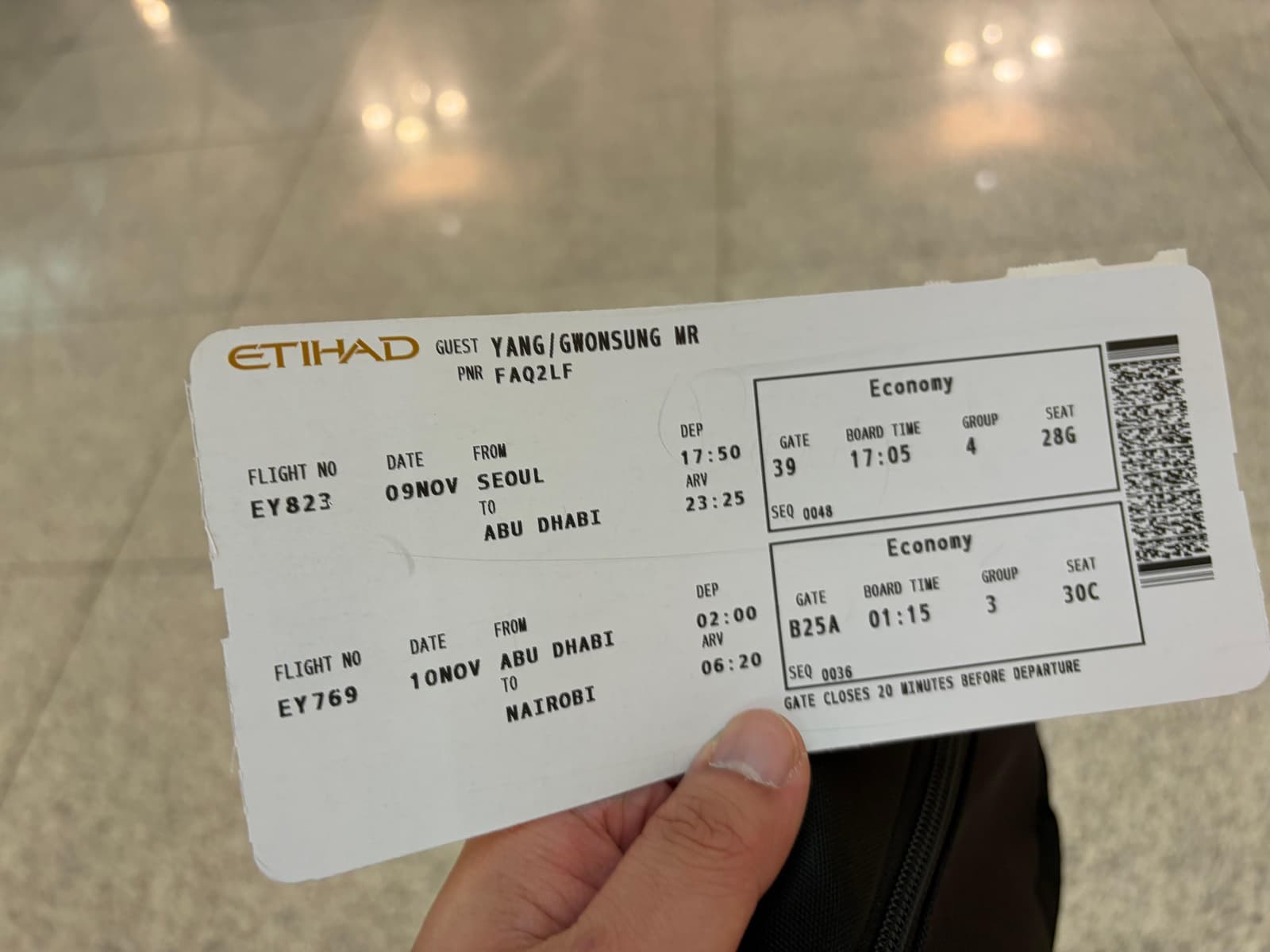 케냐까지는 직항으로 가는 게 없기 때문에 인천공항에서 아랍에미리트(UAE)의 아부다비까지 10시간 35분, 아부다비 공항에서 2시간 35분 대기, 케냐의 나이로비까지 5시간 20분을 날아서 총 18시간 30분의 긴 여정을 떠나야했다.