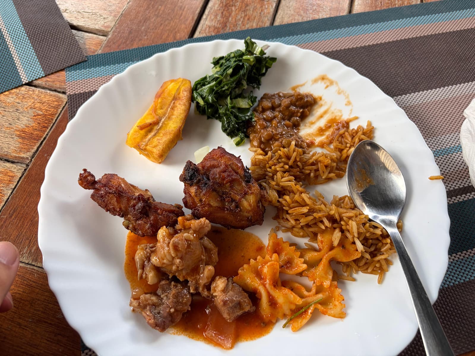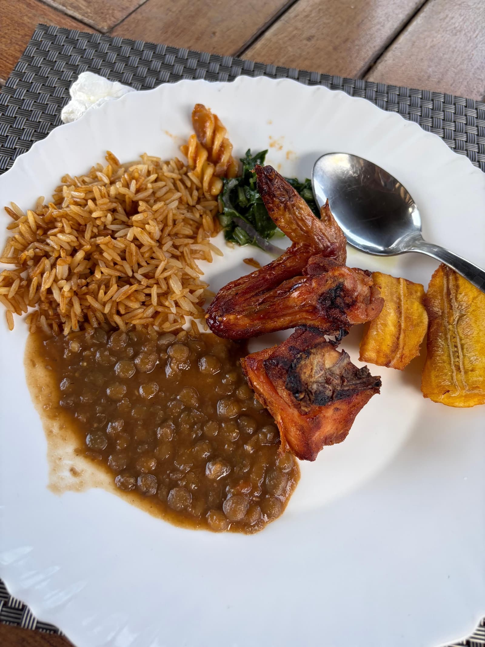 첫날 저녁인데 케냐의 쌀은 우리나라와 달리 길쭉길쭉 했고, 뭔가 동남아에서 나올 법한 쌀 품종인 거 같았다.
