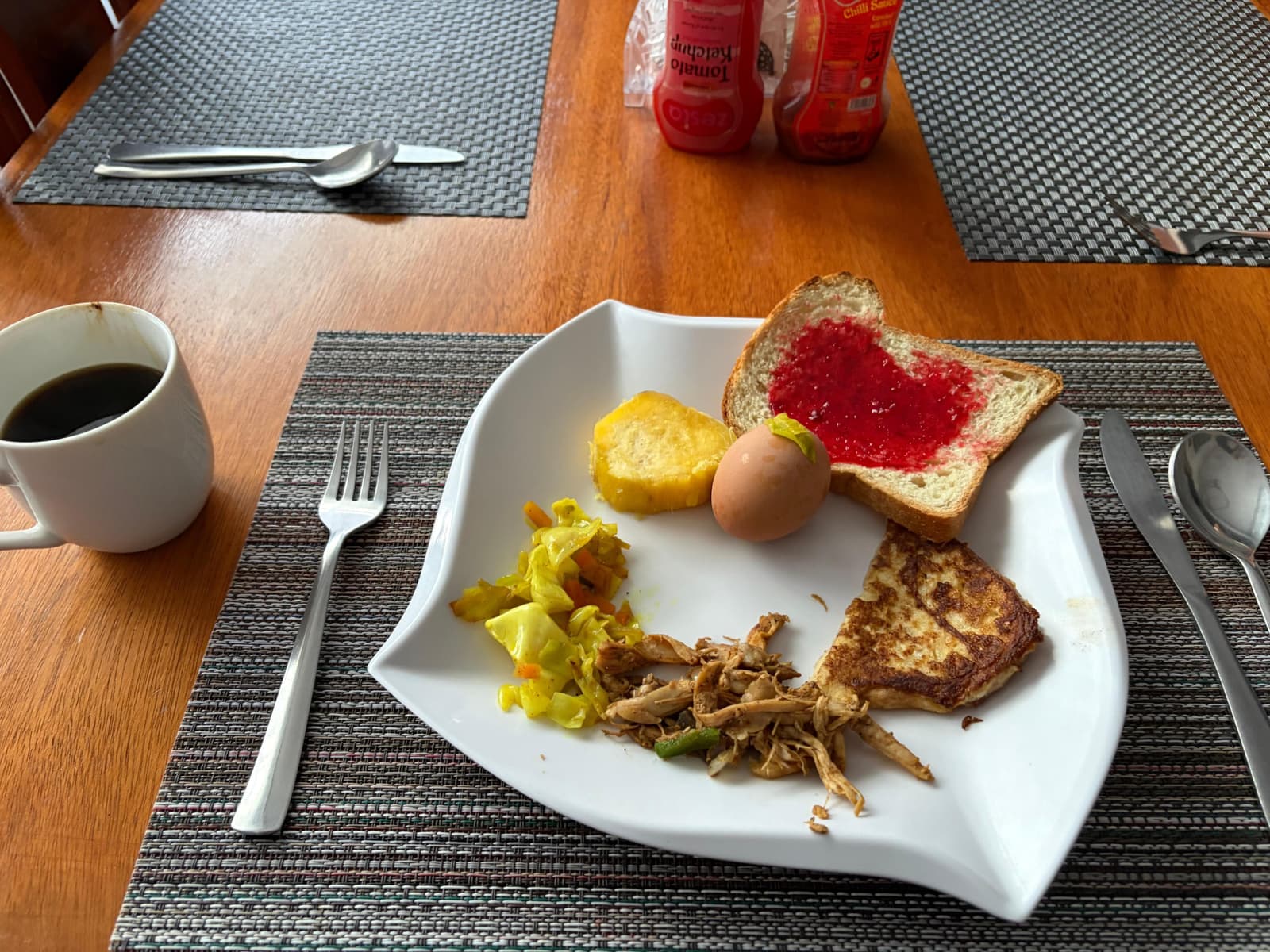 숙소로 돌아와 저녁을 먹는데 너무 내스타일이 아니어서 조금만 담았더니 내가 불쌍해보였는지 계란후라이를 따로 해주었다.