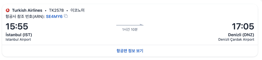 파묵칼레로 가기 위해서는 데니즐리 공항을 가야했는데 국내선이라 그런지 1시간 10분 정도 밖에 걸리지 않았다.