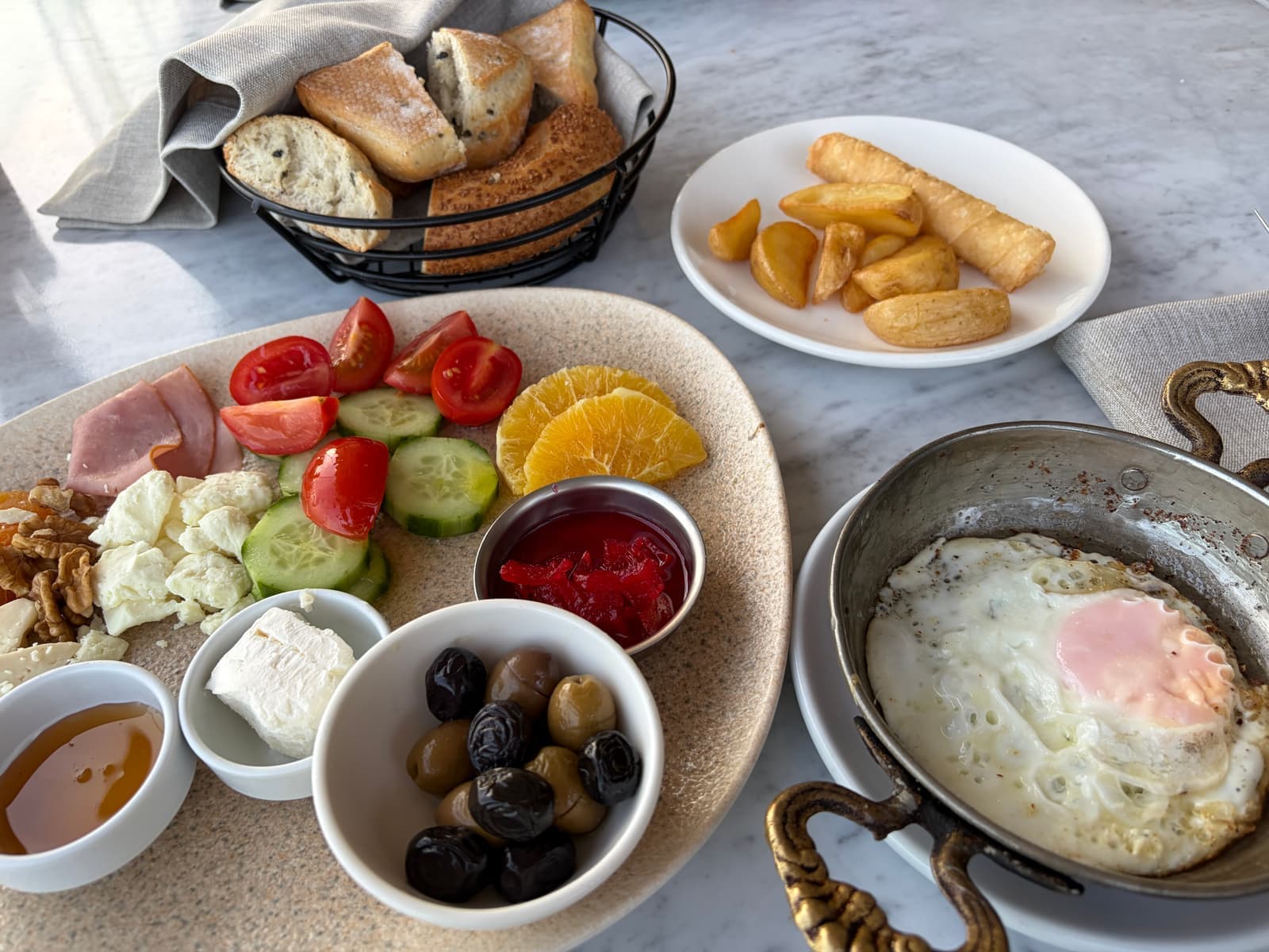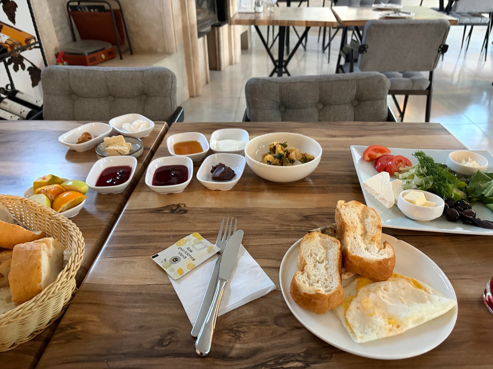 호텔에서 조식은 매우 고급스럽게 나왔고, 직접 가져다주셨다. 그리고 오므라이스를 원하면 얘기하라길래 한국식으로 볶음밥에 계란을 덮어주는 형태인 줄 알았는데 튀르키예에서는 그냥 계란후라이를 오므라이스라고 부르는 것 같았다.