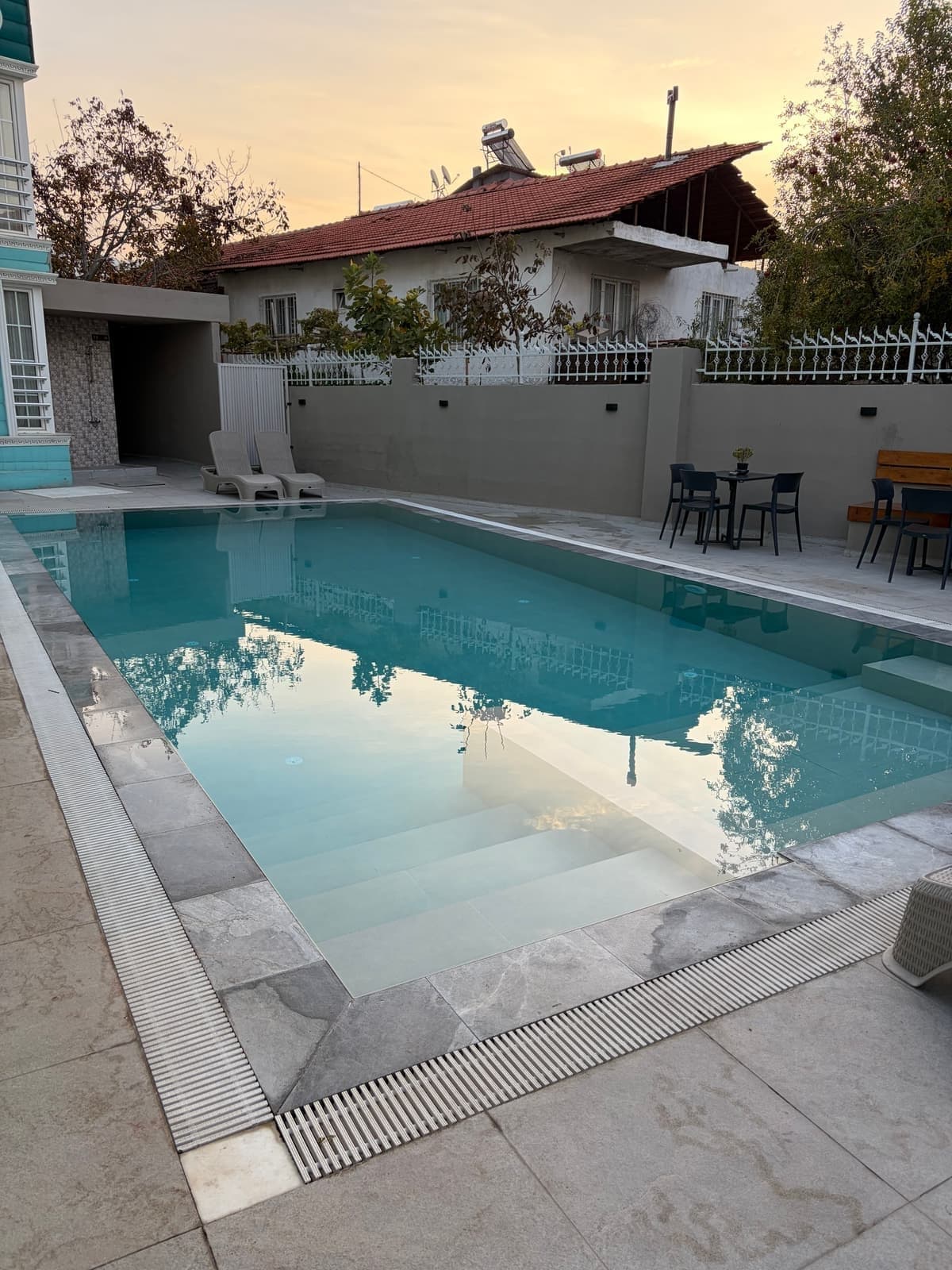 저녁에 못 본 풀장도 봤는데 너무 추워보여서 수영할 엄두는 나지 않았다.