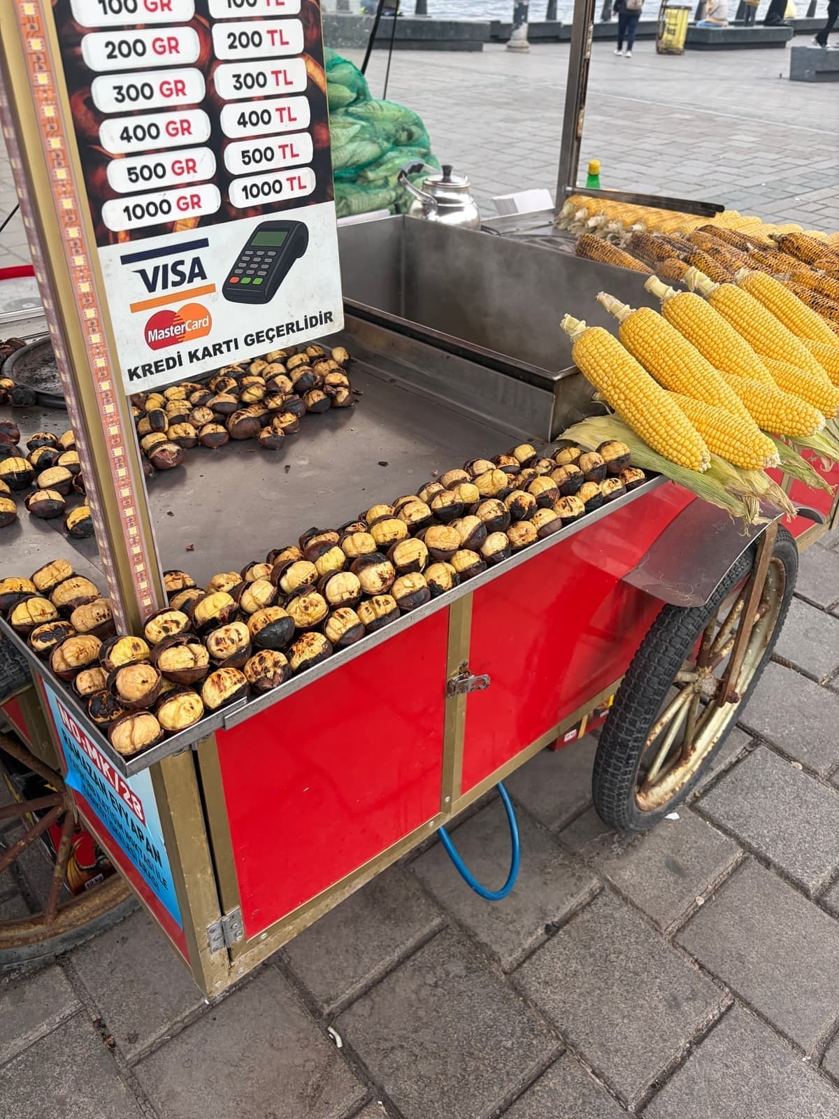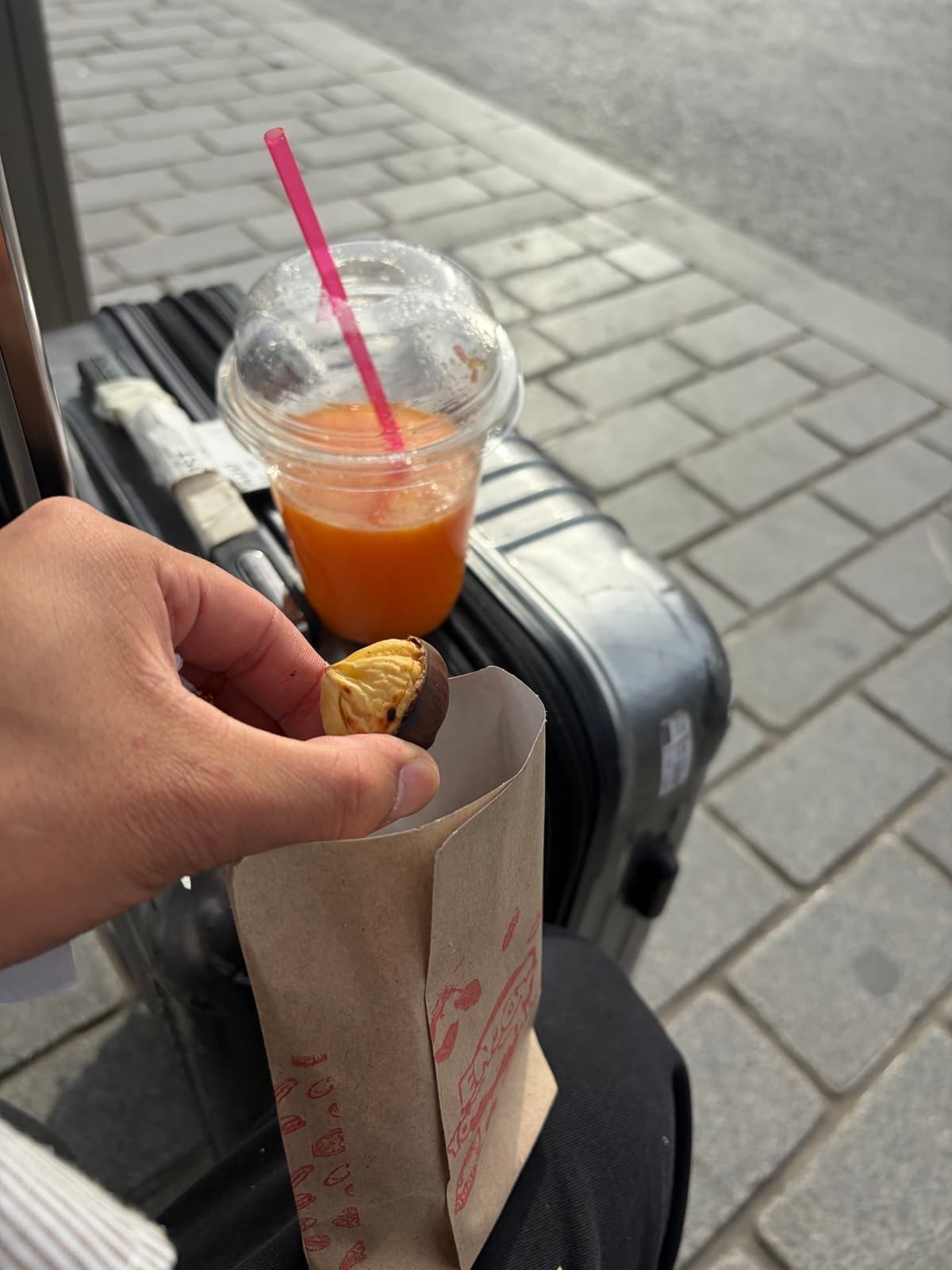 그래서 양보해달라는 눈치였고 나는 넉넉하게 나왔기 때문에 눈물을 머금고 양보해주었다. 원래는 공항에 가서 여유롭게 점심을 먹으려고 했는데 이제 공항에 가서 촉박할지 모르기 때문에 그냥 노점에 있는 군밤과 쥬스로 점심을 간단히 떼웠다.