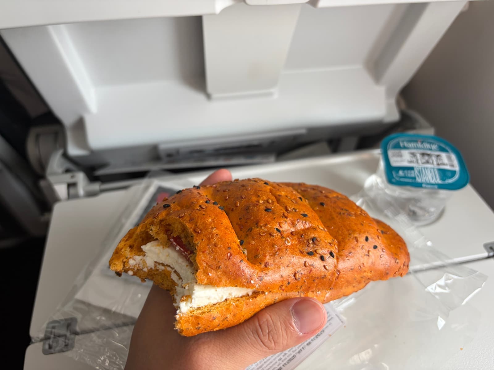 근데 한시간 정도 밖에 가지 않는데도 기내식이 나와서 신기했다. 물론 간단한 샌드위치 형태로 나왔고, 물이 생수병이 아닌 요플레 같은 플라스틱 통에 담겨나오는 것도 신기했다.