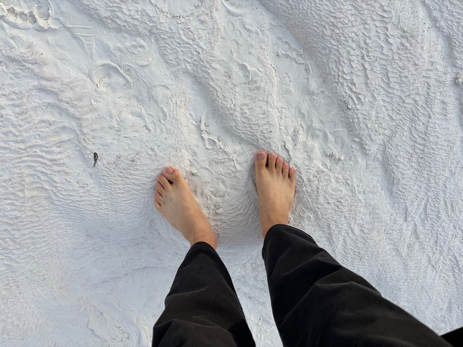파묵칼레 석회붕 보호를 위해 맨발로 걸어 올라갔어야하는데 11월 아침이기도 했고, 해가 들지 않는 곳을 지나갈 때면 발이 너무 차가웠다.