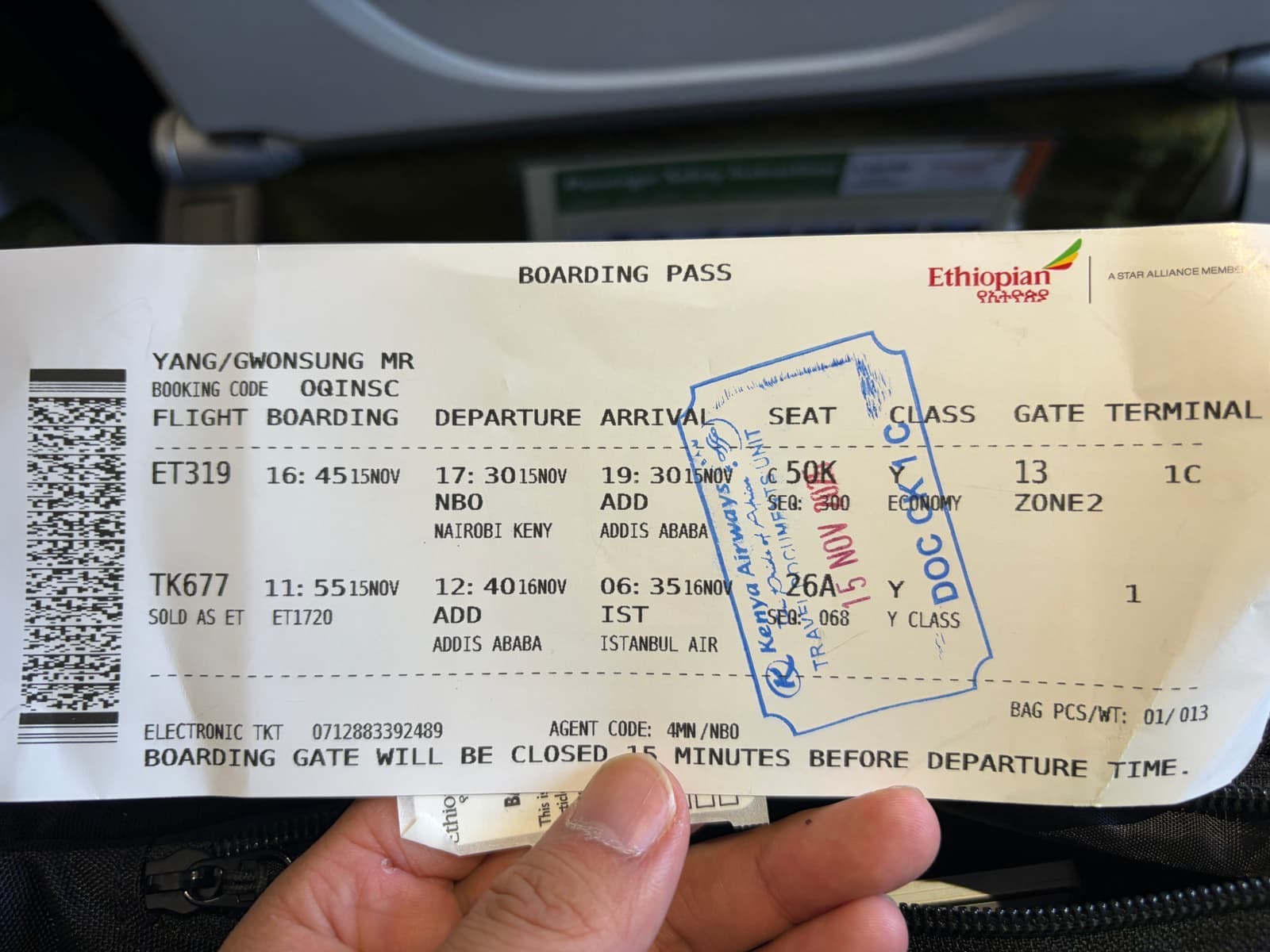 케냐까지 오는 만큼 길지는 않았지만, 아디스 아바바 공항까지 2시간, 그리고 아디스 아바바 공항에서 5시간 10분 가량 대기, 이스탄불 공항까지 5시간 55분 가량 소요되는 총 13시간 5분의 긴 여정이었다.