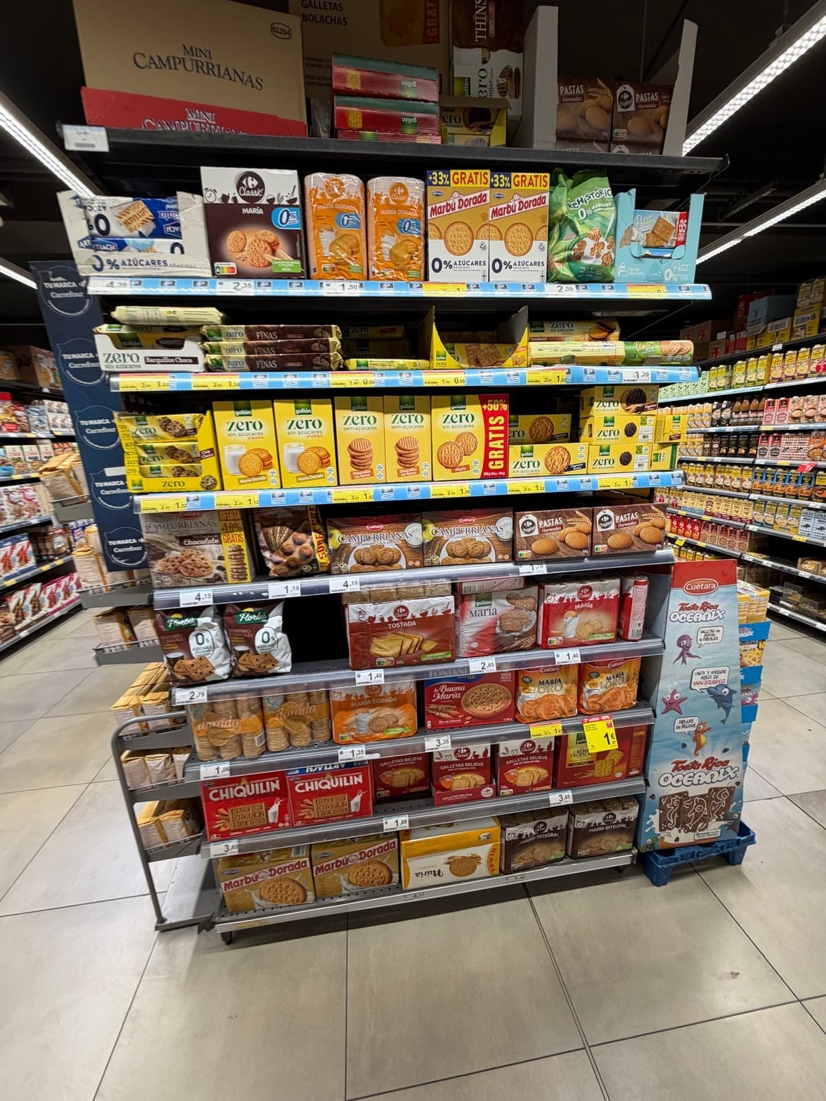 다행히 오늘은 월요일이라 숙소 근처에 있는 까르푸가 열어서 여기서 바나나/플레인 요거트/이온음료/마르게리타 쿠키를 샀다.