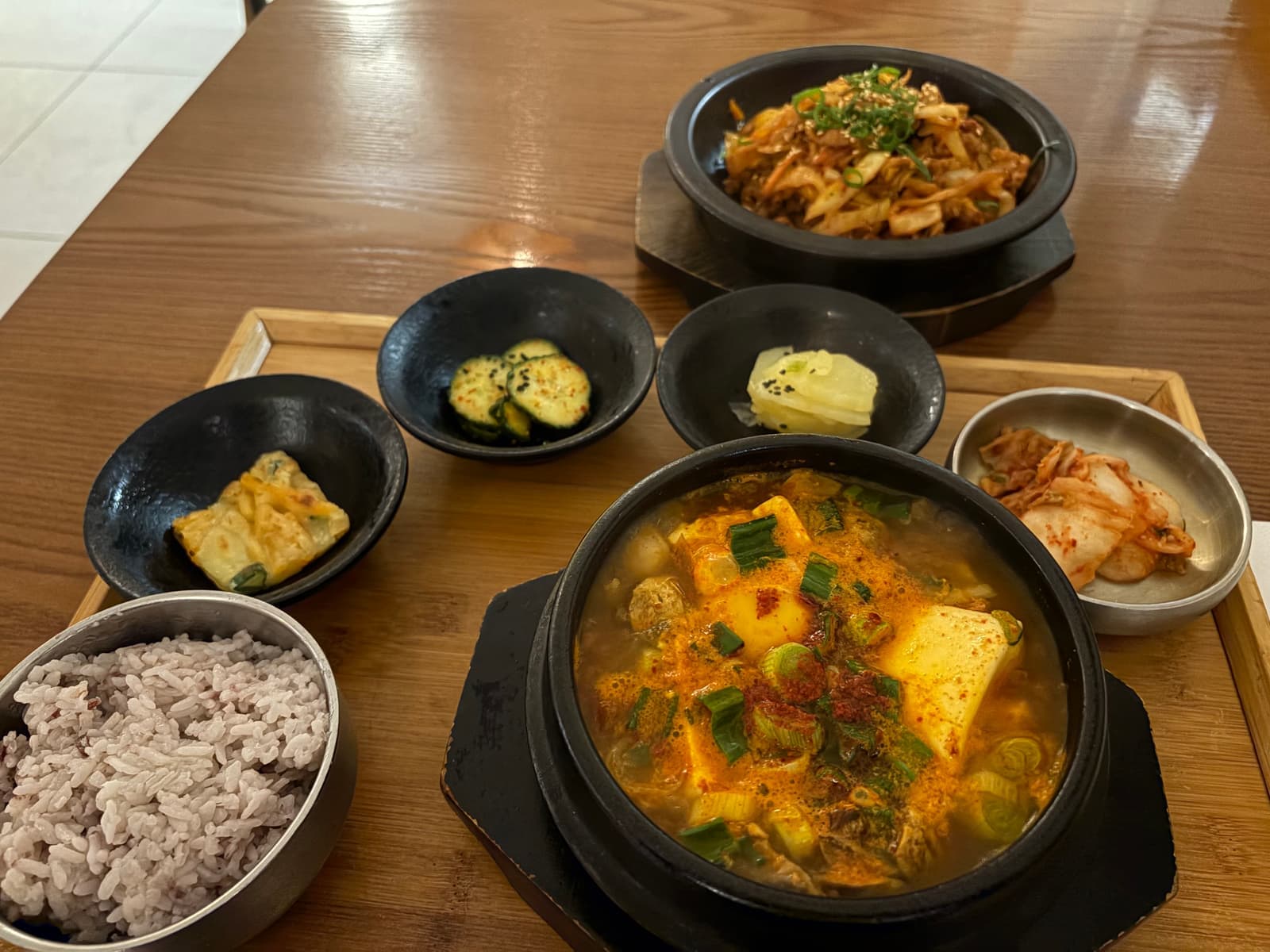 이 얼마만에 먹는 한식인가… 혼자 가니 눈치보여서 순두부찌개 + 제육볶음 두개를 시켜서 과식을 하였다.