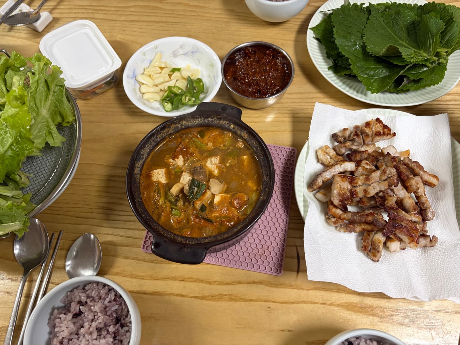 한국으로 북귀하고 3~4일 정도 쉬니까 몸이 많이 나아서 삼겹살과 된장찌개 같은 일반식은 가능하게 되었다.
